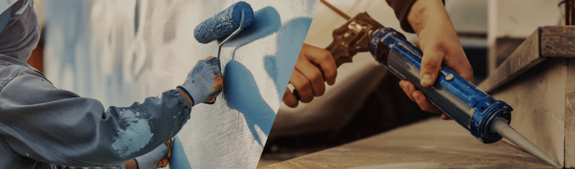 外壁の目地やサッシまわりに弾力性のあるシーリング材(コーキング材)を充填する工事です。ひび割れや劣化したシーリングを打ち替えることで、雨水の侵入や外気の影響を防ぎ、建物の防水性・気密性を高めます。見えない部分ですが、建物を長く守るための重要な工事です。